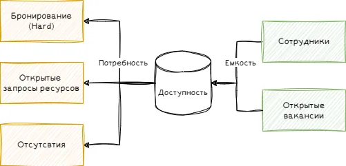 Если команда использует бронирование, то схема формирования доступности ресурса выглядит следующим образом:
